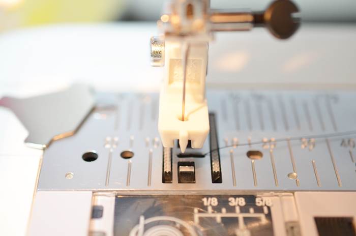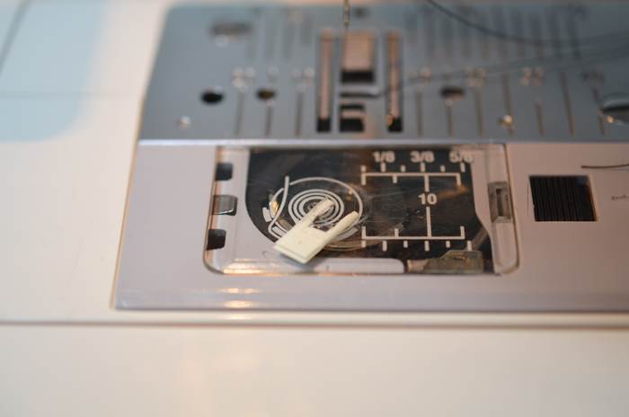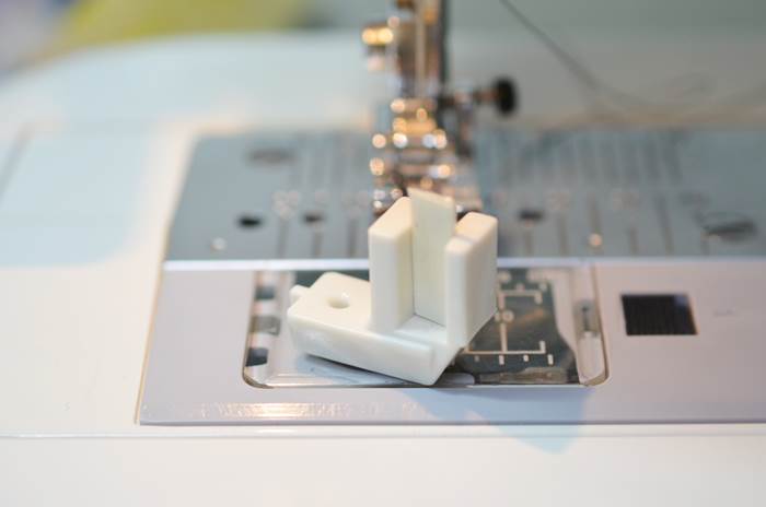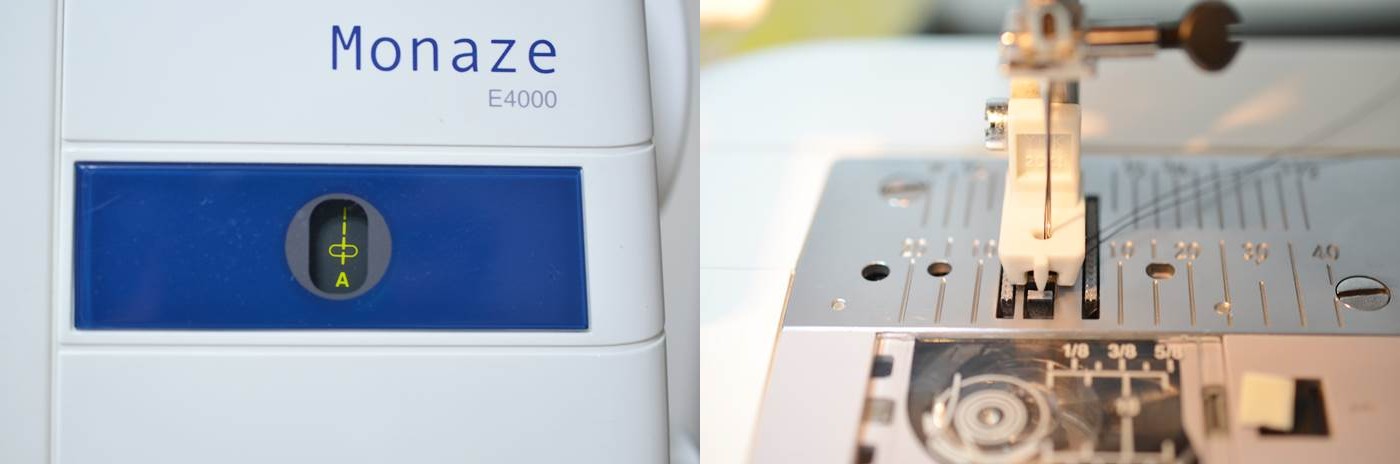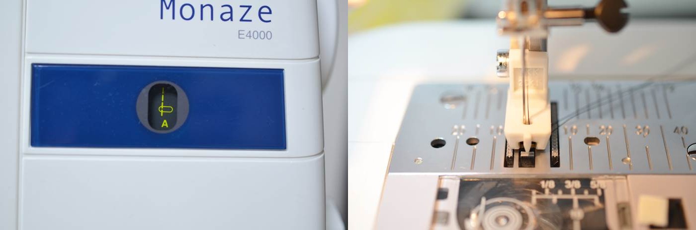 針の位置を左にした時は、コンシールファスナー押さえの左に来ています。