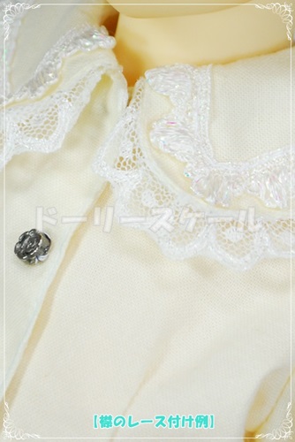 前身ごろ見返しはゴース、襟見返しはレースを使っています。
