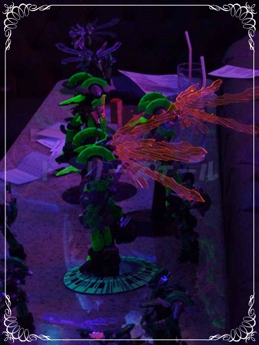 ここのカラオケの部屋は歌っている間だけブラックライトが点くのです。