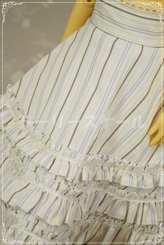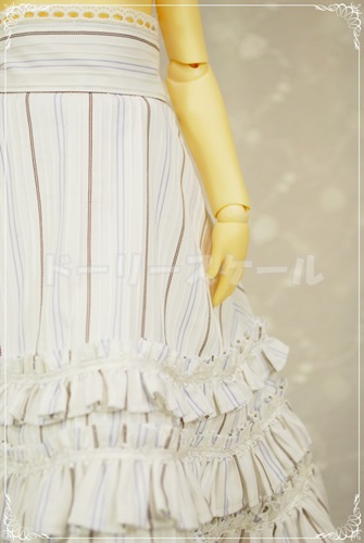 スカートは全円ではありませんが、十分な広がりを確保していますので中にしっかりたパニエを着せてあげて下さい♪